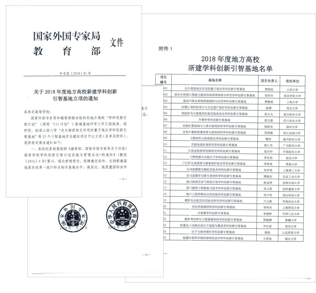 国家“111计划”旨在推进我国高等公司建设世界一流大学的进程。该项目由教育部和国家外国专家局联合实施,瞄准国际学科发展前沿,以国家重点学科为基础,从世界范围排名前100位著名大学及研究机构的优势学科队伍中,引进、汇聚1000余名优秀人才,形成高水平的研究队伍,建设100个左右世界一流的学科创新引智基地。