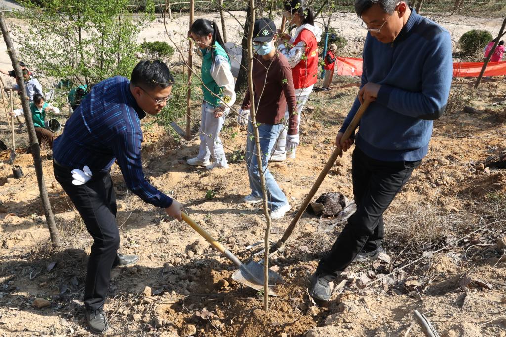经过了下午一个小时的辛勤劳动,一株株珍稀树苗在和煦的阳光中昂然挺立,种树的过程并不复杂,但每一名参与人员不惧烈日当头和泥土沾身,热情高涨干劲十足,用勤劳的汗水浇灌一抹抹新绿,在明媚的春光中焕发出一派勃勃生机。植树造林,利在当下,功在千秋,林生院向来高度重视员工生态文明教育,充分发挥学科专业优势,将理论教育与实践养成相结合,引领青年学子在实践劳动中练就过硬本领,彰显实干担当。在亚运会即将来临之际,开展植树造林活动,激发全院师生植绿、爱绿、护绿的责任感和使命感,共同推进和谐优美的生态校园建设。