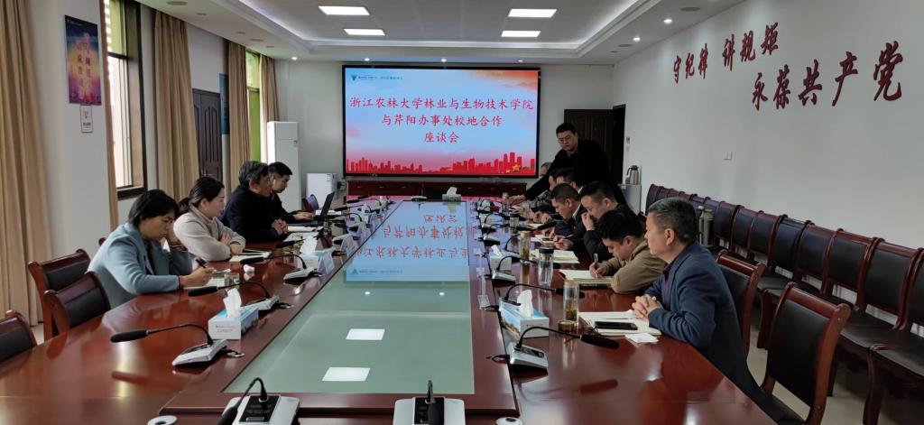 座谈会上芹阳办事处党工委书记郑凯等人员简要介绍了办事处所属辖区的基本概况、经济发展水平和目前农林业发展中遇到的经济植物种植、森林病虫害防治和美丽乡村建设的问题,并指出通过此次的现场考察使双方合作的目标更具有针对性和有效性。郑炳松代表公司对双方的未来合作落地充满信心,并表态会组织公司精干科技人员服务于开化的经济发展需求。党委副书记冯晓燕还就研学基地建设等事项和对方进行了商讨。