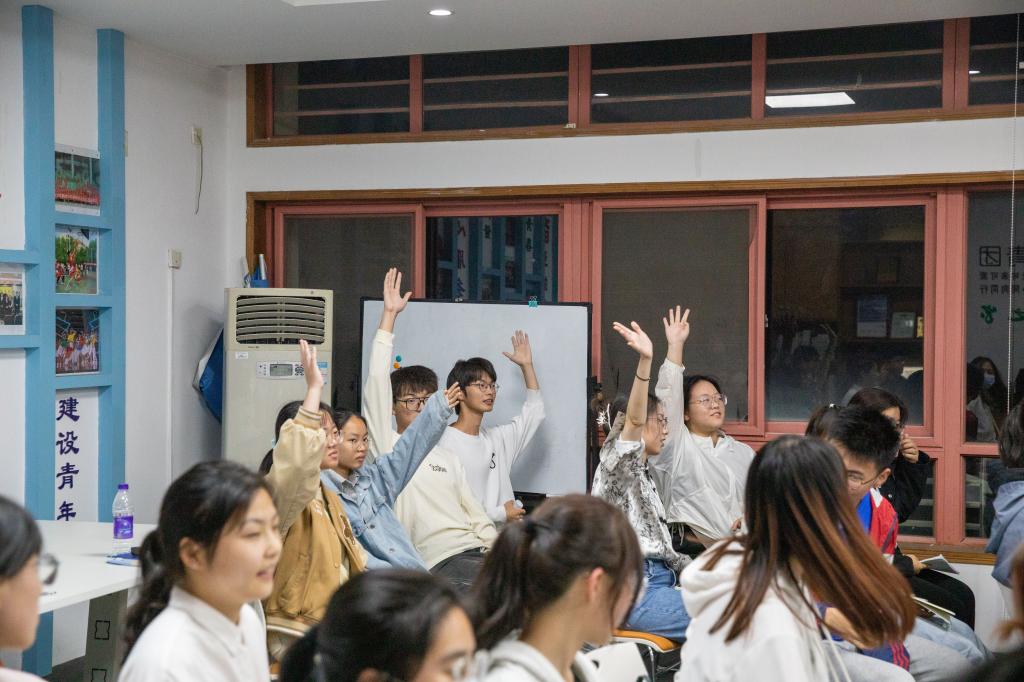 随后,包林帆老师带领同学们展开了热烈的讨论。他通过小组讨论等形式,激发同学们畅所欲言,同学们回忆起了自身“自找苦吃”的经历,并主动与大家一同分享。最后,包林帆老师结合大家的分享对“自找苦吃”进行了深入剖析,从“自找苦吃”的价值导向和意义导向进行了分享,为同学们答疑解惑,同时也增强了大家对“自找苦吃”的认同感,纷纷表示要更加昂扬地树立起这股精气神。