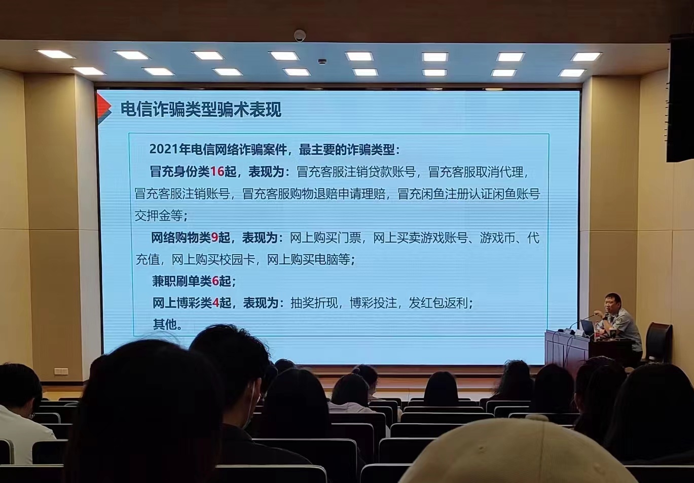 本次讲座主要涉及电信网络诈骗、公司用火安全、实验室安全以及在亚运会到来之际,网络言论的规范问题等多个方面。在讲座中,汪警官与同学们面对面交流、分享,通过对电信诈骗、网络贷款和人身安全等问题的分析和讲解,让同学们意识到在日常生活中防患于未然的重要性,敲醒了安全警钟。最后,在汪浩警官幽默可亲的话语和同学们热烈的掌声中,此次讲座圆满结束!