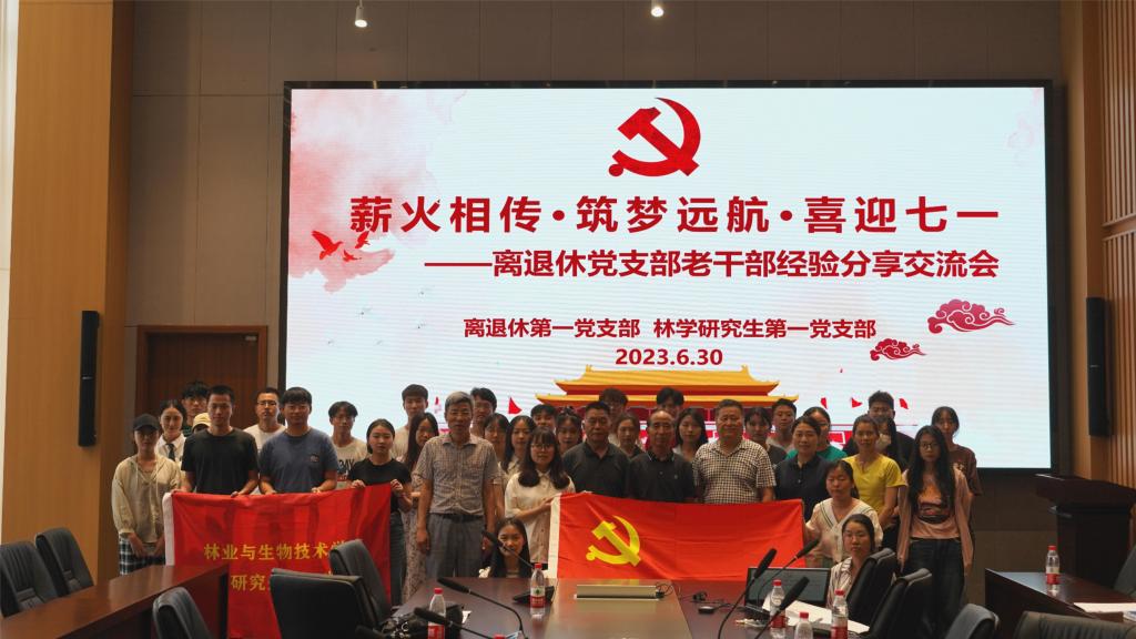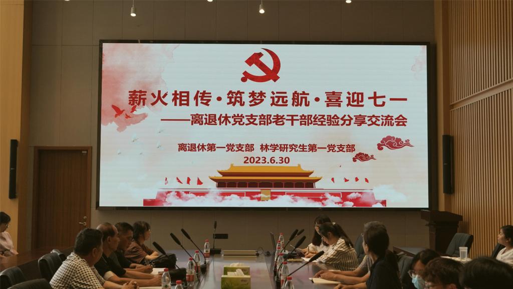 为进一步贯彻落实习近平总书记关于老干部工作的一系列重要指示批示精神,推动离退休干部工作再上新水平,加强离退休党员与研究生党员之间的交流与互动,共同推动党建工作发展,增进研究生党员对党的认识和理解,提高党性修养,同时,为喜迎七一,为党庆生,6月30日下午,公司退休第一党支部与林学研究生第一党支部共同举办“薪火相传·筑梦远航·喜迎七一”离退休党支部老干部经验分享交流会。公司党委书记郑炳松、党委副书记冯晓燕、还有退休老干部董林根、严逸伦、王学利三位老师以及林生院研究生各党支部党员代表和积极分子参加此次活动。会议由林学研究生第一党支部书记吴翠萍主持。