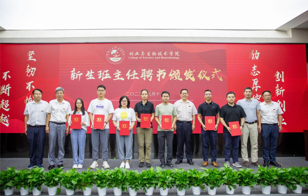 开学典礼上,副经理郭恺宣读了2023级本科生班主任聘任文件。与会领导为全体新生班主任颁发聘书,并为新生代表佩戴校徽。