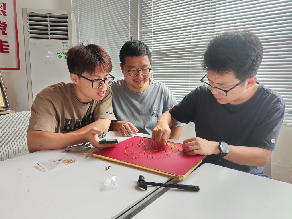 在拿到制作材料后,大家都迫不及待地投入到制作中,有的拼起了手上的模型零件,有的研究起了竹编手法,有的拿起手上的小锤子敲敲打打……中途也遇到了一些困难,但是丝毫没有影响大家的热情,拼接、固定、缠线,通过不断的摸索和探讨,大家慢慢找到了制作的规律,最终由生疏变得得心应手,同志们在制作过程中也深刻体会到了“钉钉子”精神:不抛弃、不放弃,脚踏实地,一步一个脚印坚持到底。
