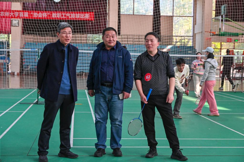 公司领导对于此次活动开展高度重视,公司党委书记郑炳松第一时间莅临现场观赛,并对师生们赛场上的激情拼搏与体育竞技精神表示肯定。公司常务副经理王正加更是亲自带队,与参赛选手们同台竞技。王正加教授在赛前亲切地与同队员工交谈,分享关于混双比赛的经验与心得,进行发球示范与教学,并参与到激烈的比赛当中去,赛场上的他挥洒汗水,发挥娴熟球技的同时,更以奋力拼搏的体育精神激励着在场的所有同学与老师。欢呼与拼搏交织,奋斗与热血同燃,比赛中教职工与同学们不断赛出绝妙的配合与精彩的瞬间,激情绽放,谁与争锋,尽显林生活力与“无体艺 不农林”的拼搏精神。