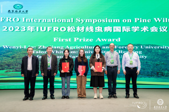 10月25-28日,由南京林业大学主办的2023年国际林联(IUFRO)松材线虫病国际学术会议在南京召开。公司松材线虫病研究团队的3位研究生做了学术报告,并全部获得大会优秀青年学术报告奖。其中,博士研究生刘文义以第一名的成绩获得一等奖,博士研究生章彦君和硕士研究生陈静分别获得二等奖和三等奖。