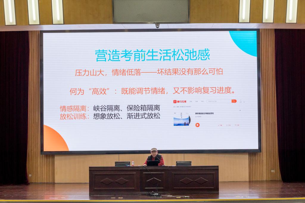 会议伊始,戎幸老师以考前复习的正确姿态为切入点,列举多项科学高效的备考策略和各类积极正向的备考心理,为同学们指明期末考前复习状态调整的合适方向。此外,他通过分析员工在消极低落状态下所暴露的情绪问题,带领同学们辩证地看待和面对期末周的考试压力,并提出多种可行性高、适用面广的方法帮助同学们接调整心态,积极地看待和处理自身备考焦虑。