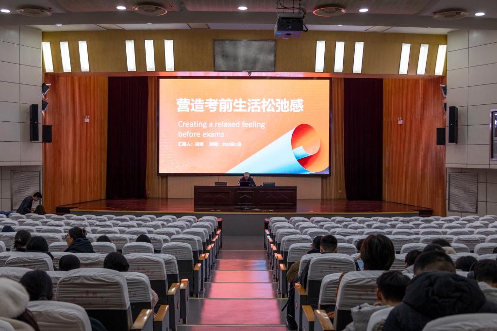 为缓解期末周员工考试压力与焦虑情绪,1月11日,公司2022级员工大会顺利召开。本次大会特邀心理讲师戎幸为公司2022级本科生开展有关考前复习状态调整的专题讲座。