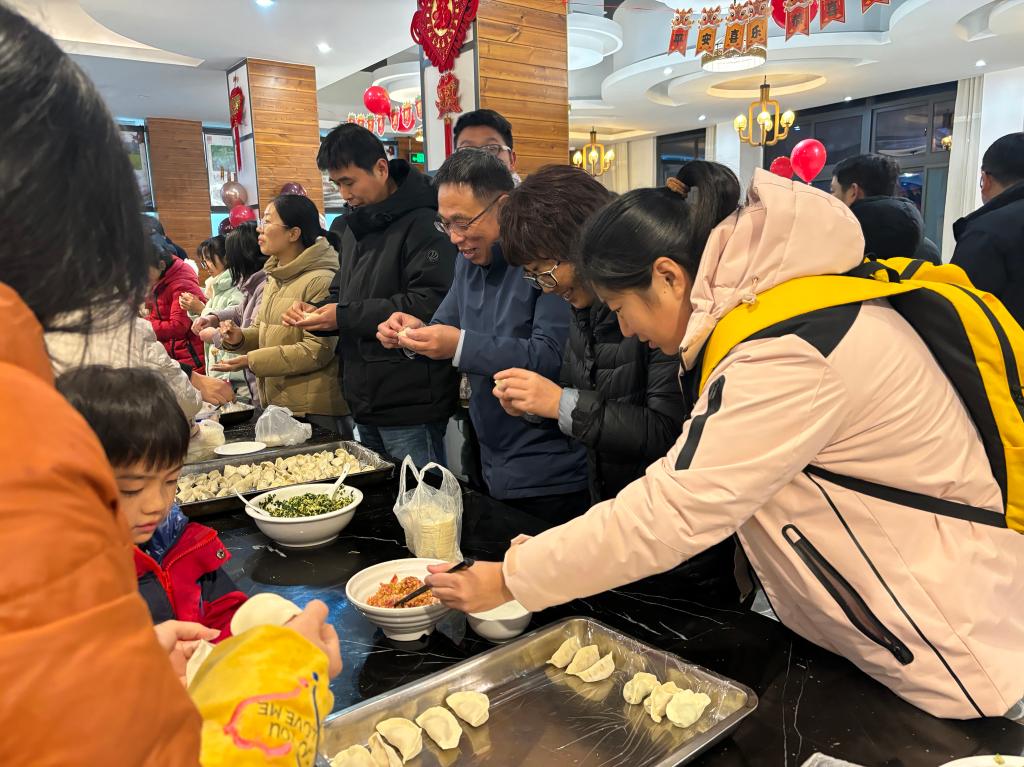 活动伊始,公司的老师们欢聚一堂,共同包饺子,现场洋溢着浓厚的新春气氛。郑炳松书记在开场时介绍了本次活动的情况,并强调了公司“家”文化的精神内涵。在一句句新春祝福中,大家享受着共同劳动的果实,分享着内心的喜悦。用餐过程中,潘军可副书记主持了扣人心弦的抽奖环节,引燃了所有人的热情。在喜庆的报奖声中,大家开心地领回了自己的奖品。