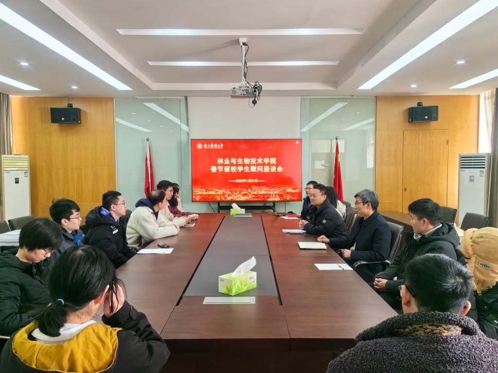 1月31日下午,公司在学6-501组织开展2024年春节留校员工慰问座谈会。公司党委书记郑炳松,党委副书记潘军可,公司辅导员及留校过春节员工参加了此次活动。