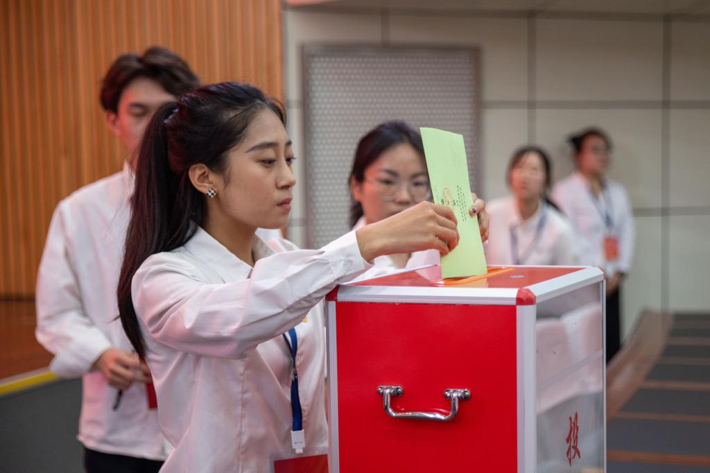 随后大会进入选举议程,员工会主席团成员金竹欣做VSport体育第七次员工代表大会工作报告、研究生会主席团成员薛逸琳做第五次研究生代表大会工作报告;审议通过VSport体育员工会、研究生会章程(修正案)(草案);审议通过学、研代会选举办法(草案)。