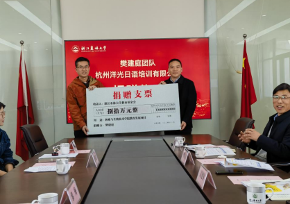 2024年11月28日上午,公司在学六会议室举办捐赠仪式。公司教师樊建庭、杭州洋光日语培训有限公司董事长何辉林、公司副董事长胡祖吉,员工办主任哀建国,公司党委书记郑炳松,副书记潘军可、教师代表出席捐赠仪式,仪式由郑炳松主持。