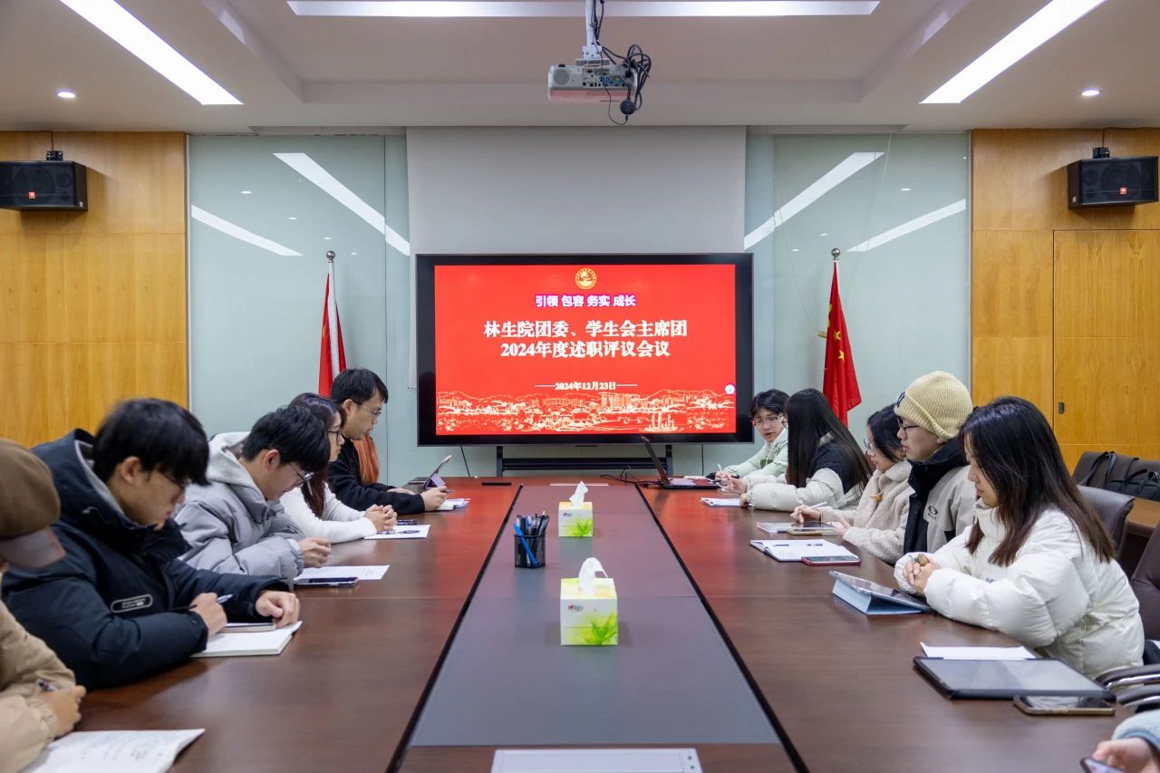为进一步落实林生团学工作,增进团学各部门交流合作,总结本年度工作完成情况,部署下阶段工作计划,公司于2024年12月23日晚召开团委、员工会主席团2024年度述职评议会议。院团委书记李阳、院员工会秘书长葛诗月及全体林生团学主席团成员参加本次会议。