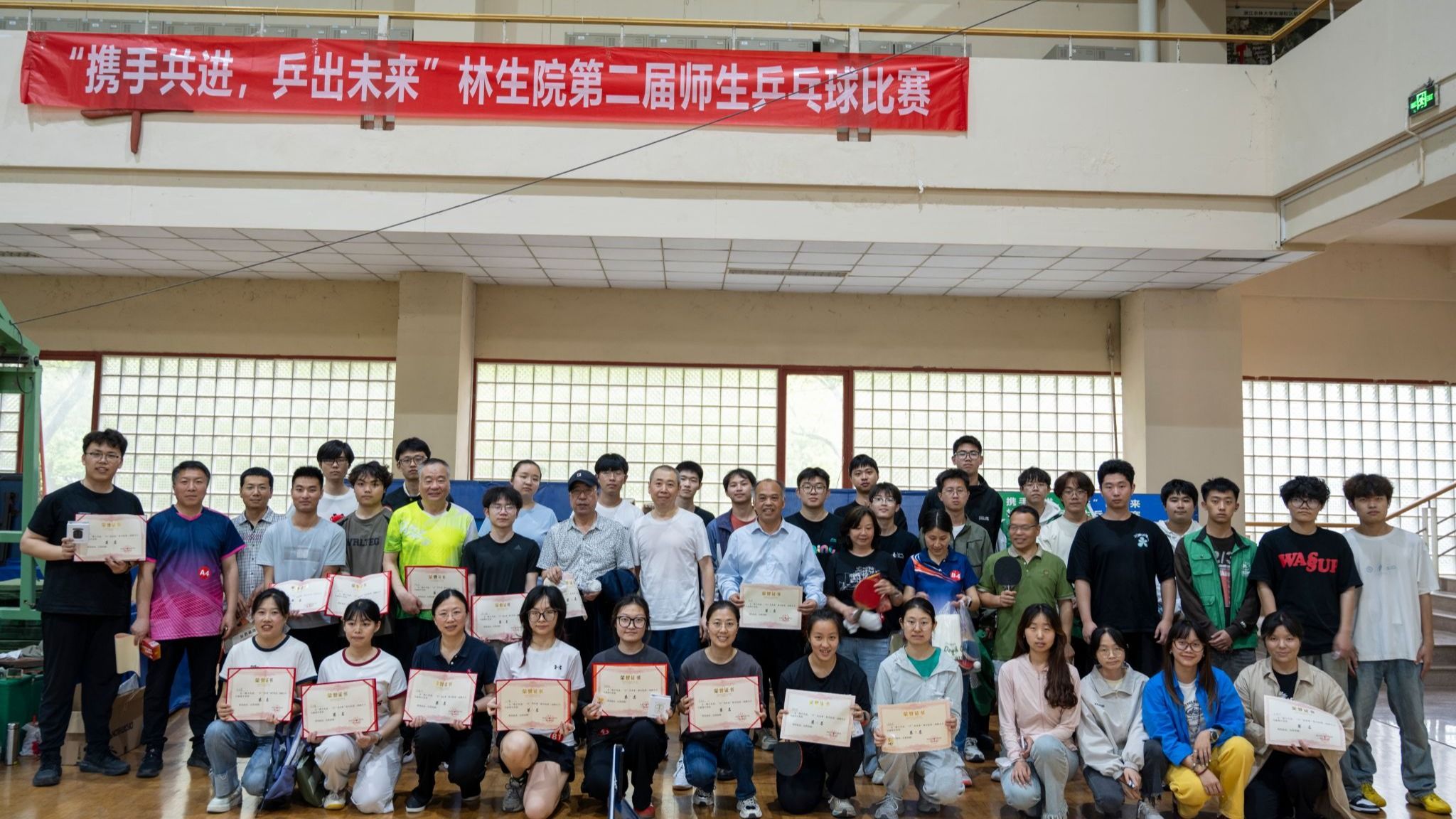 比赛中老师与同学们不断赛出风格与水平,携手共进,奋勇争先,尽显林生活力与“无体艺不农林”的拼搏精神。经过一个下午的激烈角逐,在观众的声声喝彩与欢呼中,此次比赛的冠、亚、季军队伍诞生,公司第二届师生乒乓球团体赛完美收官。