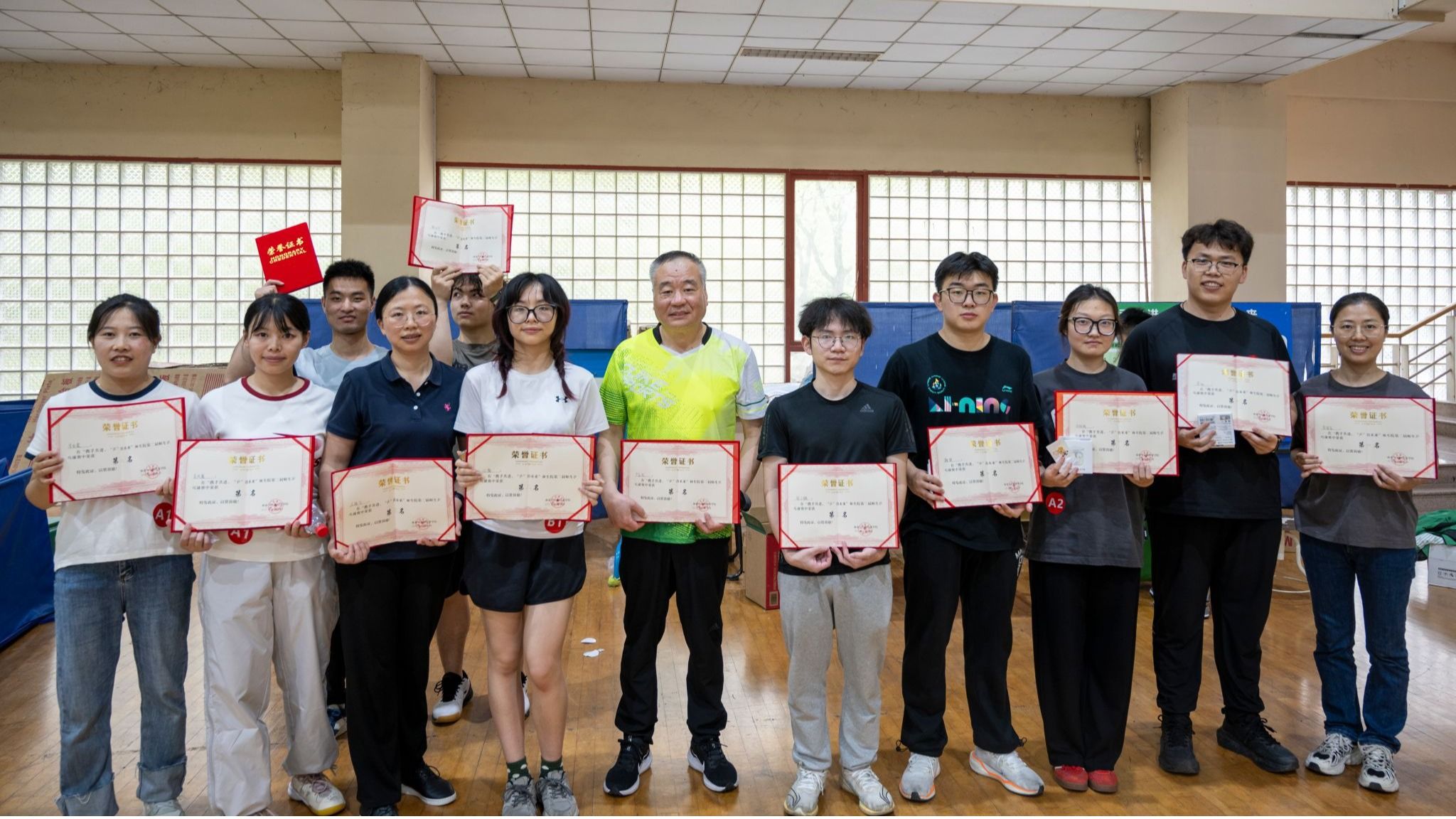 此次比赛共吸引了40余名师生踊跃报名参加,本次比赛采用混合团体赛制,由教师与员工共同组队参赛。赛事共组建8支联队,每队包含2名教师和3名员工,通过抽签确定对战顺序。赛场上,平日严谨治学的老师们换上运动装束,与青春洋溢的学子们并肩作战。师生团队默契配合,连续上演反手拧拉、正手爆冲等高难度动作,引得场边观众阵阵喝彩,球拍击球碰撞的清脆声响交织成跃动的青春乐章。