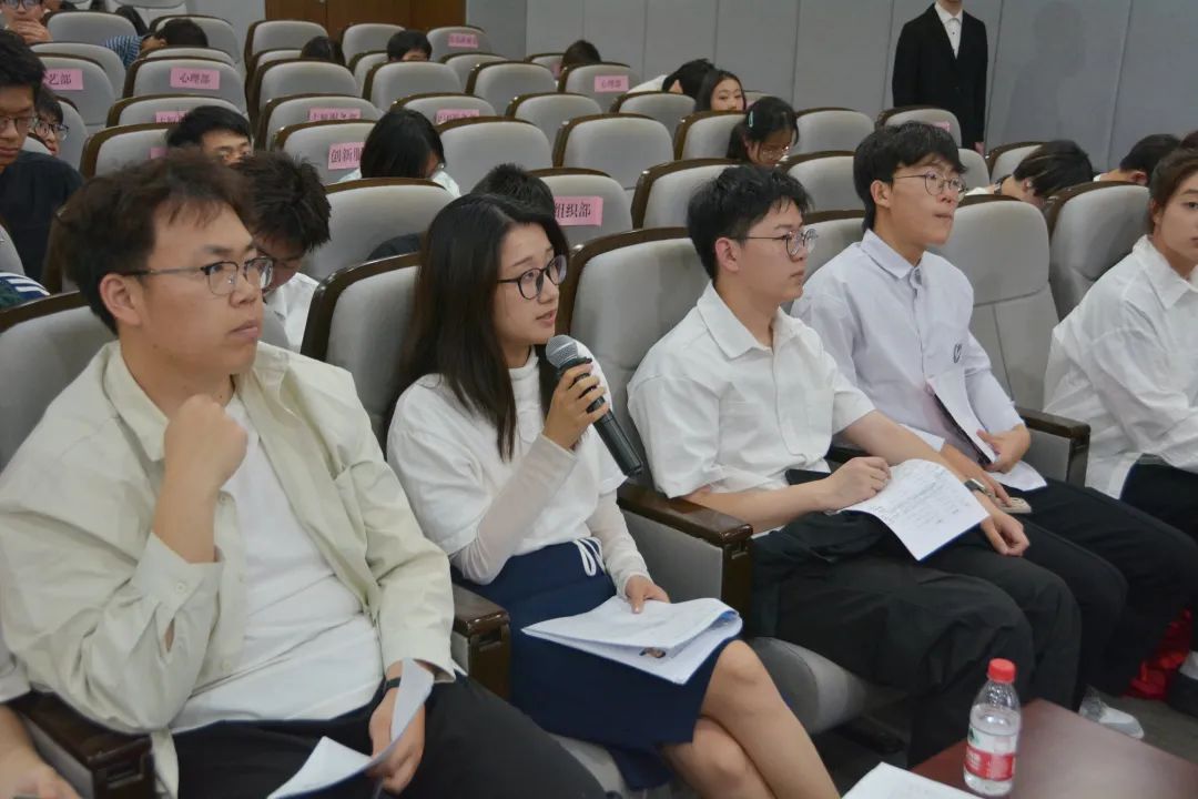 紧接着进入主席团竞聘答辩环节,诸位候选人沉着稳健,紧扣自身专长、实践履历与工作积淀,从对岗位职能的深度认知、部门发展规划到现存问题的剖析破局,展开全面阐述。由几位老师与现任主席团成员组成的评审团,针对答辩内容精准点评、深入提问,竞聘者以详实论证、缜密逻辑从容应答,充分展现专业素养与责任担当。